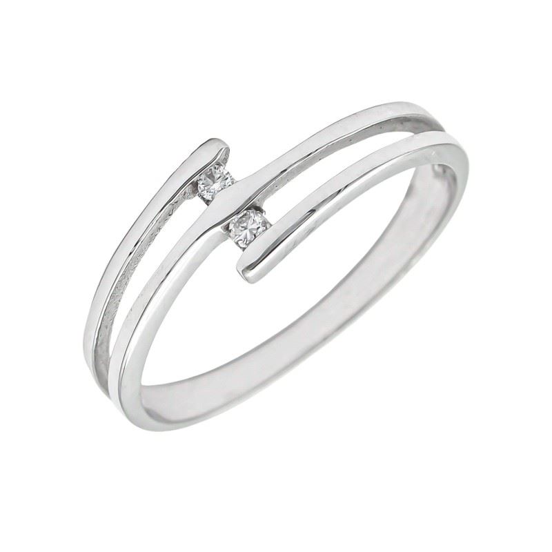 Anillo elaborado en Oro Blanco de Primera Ley 18Kt 750 milésimas con 2 diamantes talla brillante haciendo un total de 0,03ct.