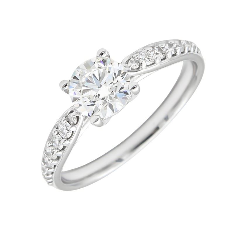 Anillo solitario acompañado elaborado en Platino con diamantes naturales en talla brillante haciendo un total de 0,83ct.