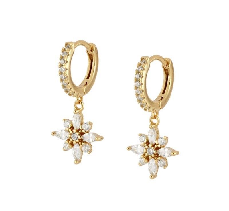 Pendientes aro con estrella de circonitas elaborados en Plata de Primera Ley 925 bañada en oro.
