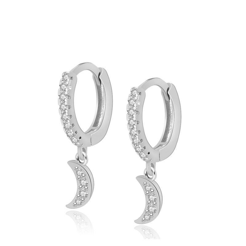 Pendientes aro con luna elaborados en Plata de Primera Ley 925 bañada en rodio