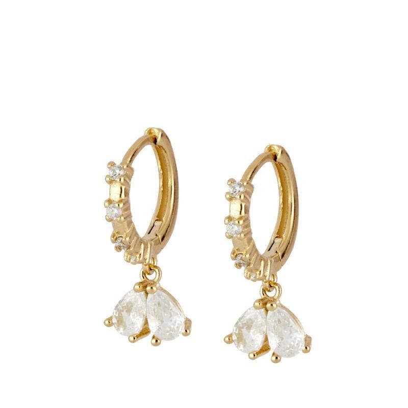 Pendientes aro con doble circonita elaborados en Plata de Primera Ley 925 bañada en oro.