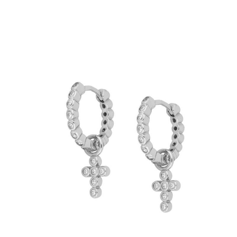 Pendientes aro con cruz elaborados en Plata de Primera Ley 925 bañada en rodio