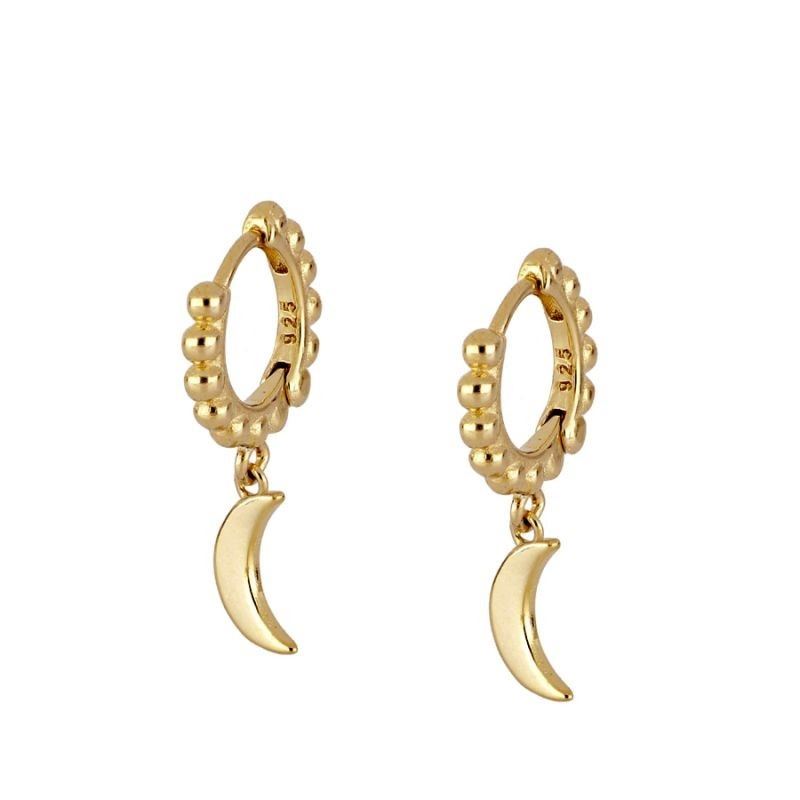 Pendientes aro con luna elaborados en Plata de Primera Ley 925 bañada en oro.