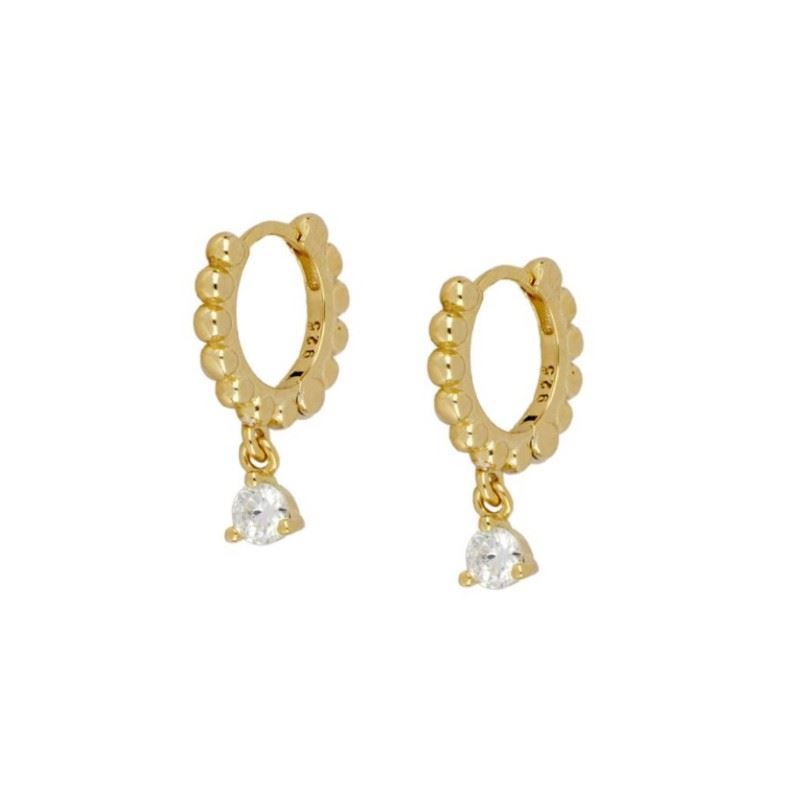 Pendientes aro bolitas con circonita elaborados en Plata de Primera Ley 925 bañada en oro.