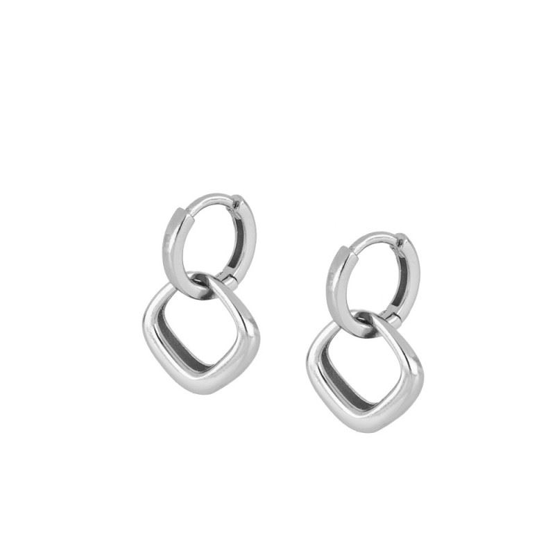 Pendientes aro cuadrado/rombo elaborados en Plata de Primera Ley 925 bañada en rodio