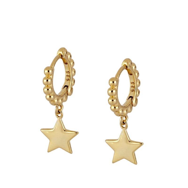 Pendientes aro con estrella elaborados en Plata de Primera Ley 925 bañada en oro.