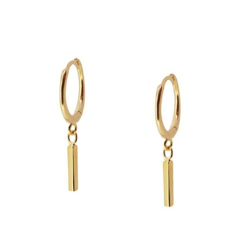 Pendientes aro con barra elaborados en Plata de Primera Ley 925 bañada en oro.