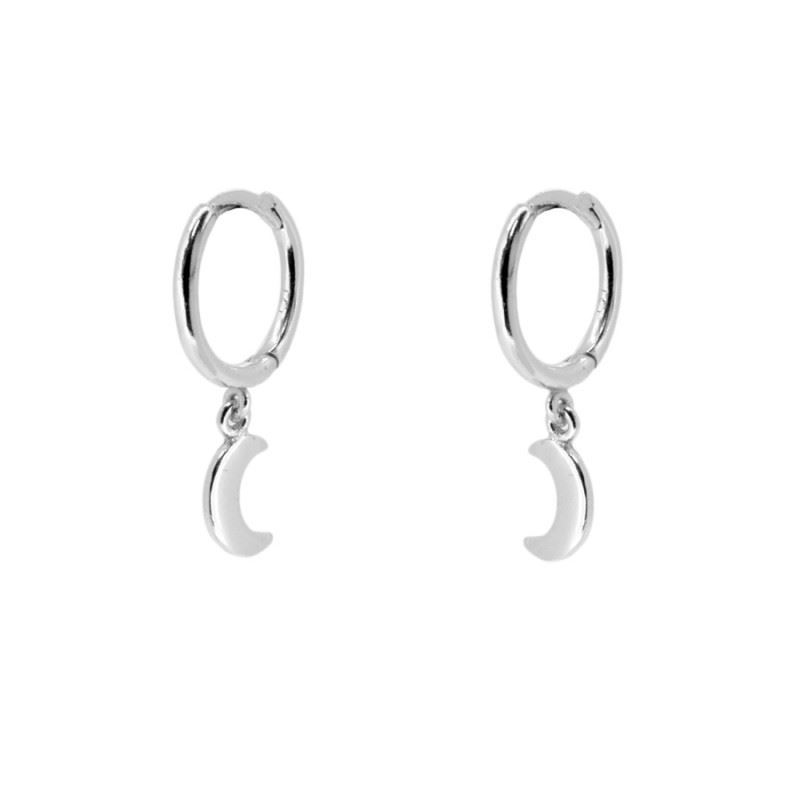 Pendientes aro con luna elaborados en Plata de Primera Ley 925 bañada en rodio