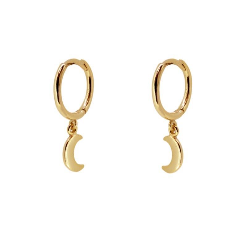 Pendiente aro con luna en Plata de primera ley 925 bañada en oro.
