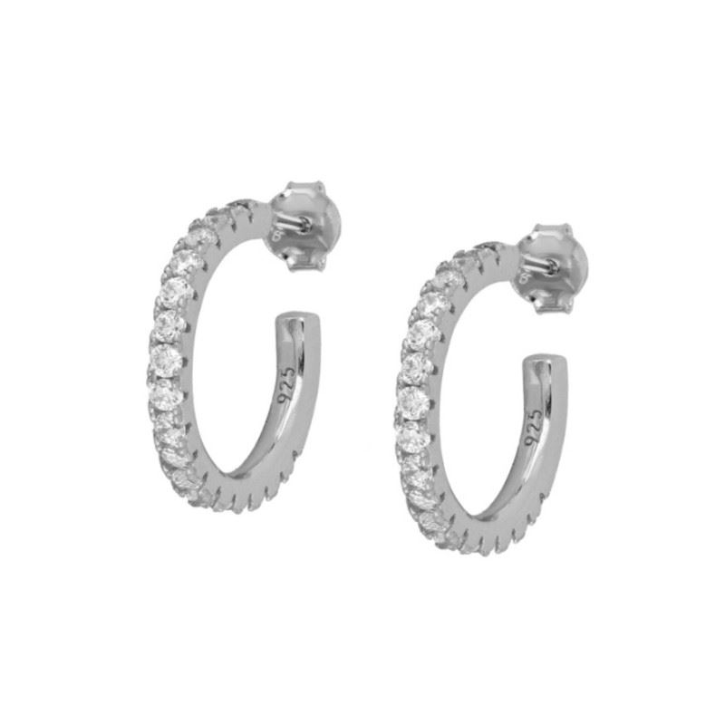 Pendientes criolla con Circonitas elaborados en Plata de Primera Ley 925 bañada en rodio