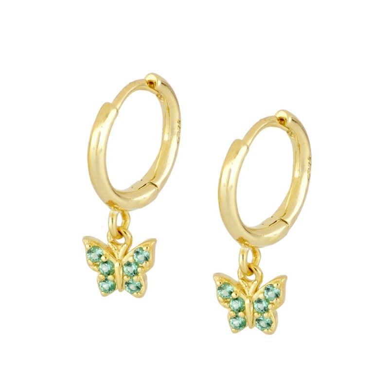Pendientes aro mariposa elaborados en Plata de Primera Ley 925 bañada en oro