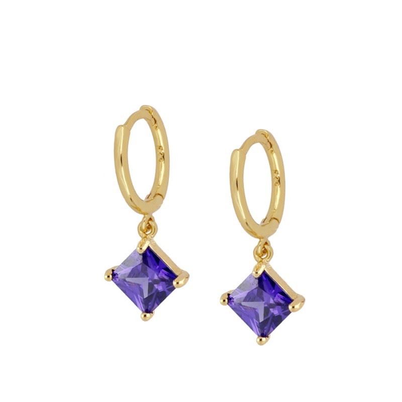 Pendientes aro con rombo elaborados en Plata de Primera Ley 925 bañada en Oro