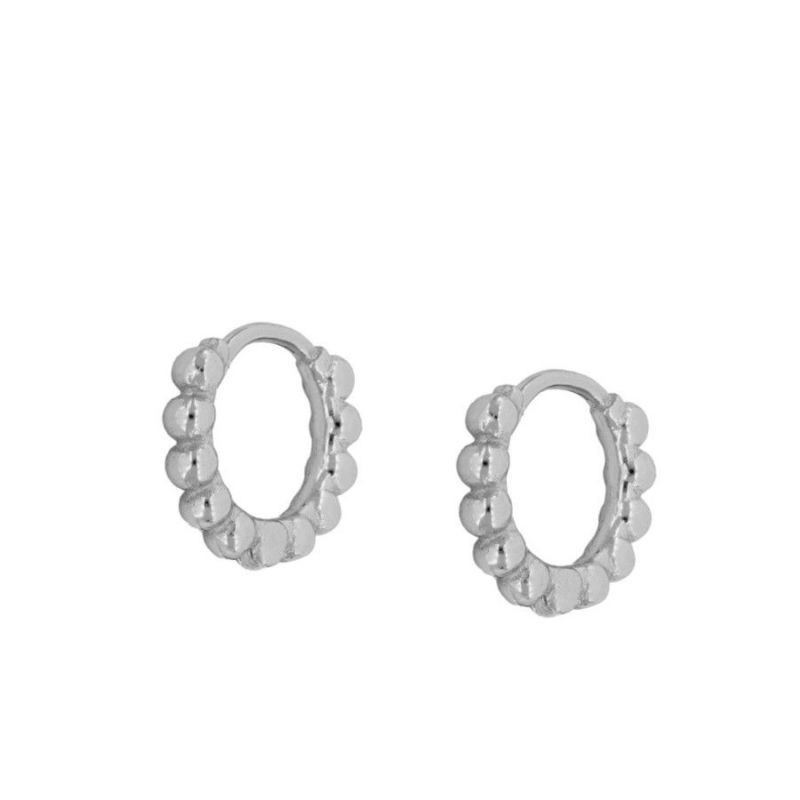 Pendientes aro bolitas elaborados en Plata de Primera Ley 925 bañada en rodio