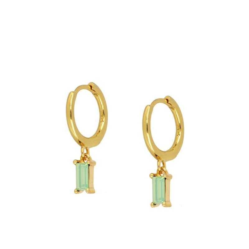 Pendientes aro con circonita rectangular elaborados en Plata de Primera Ley 925 bañada en oro.