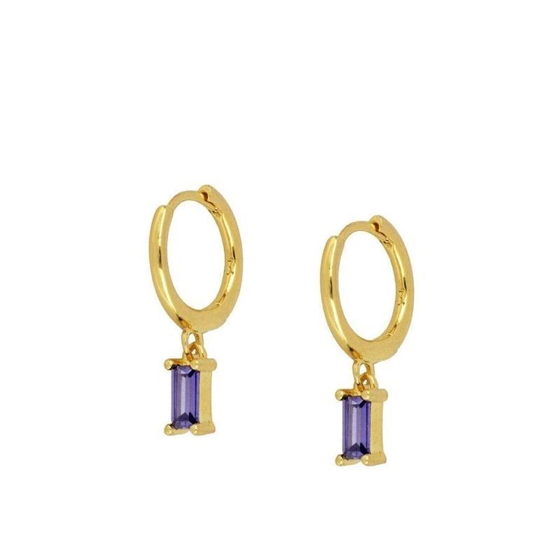 Pendientes aro con circonita rectangular elaborados en Plata de Primera Ley 925 bañada en oro.
