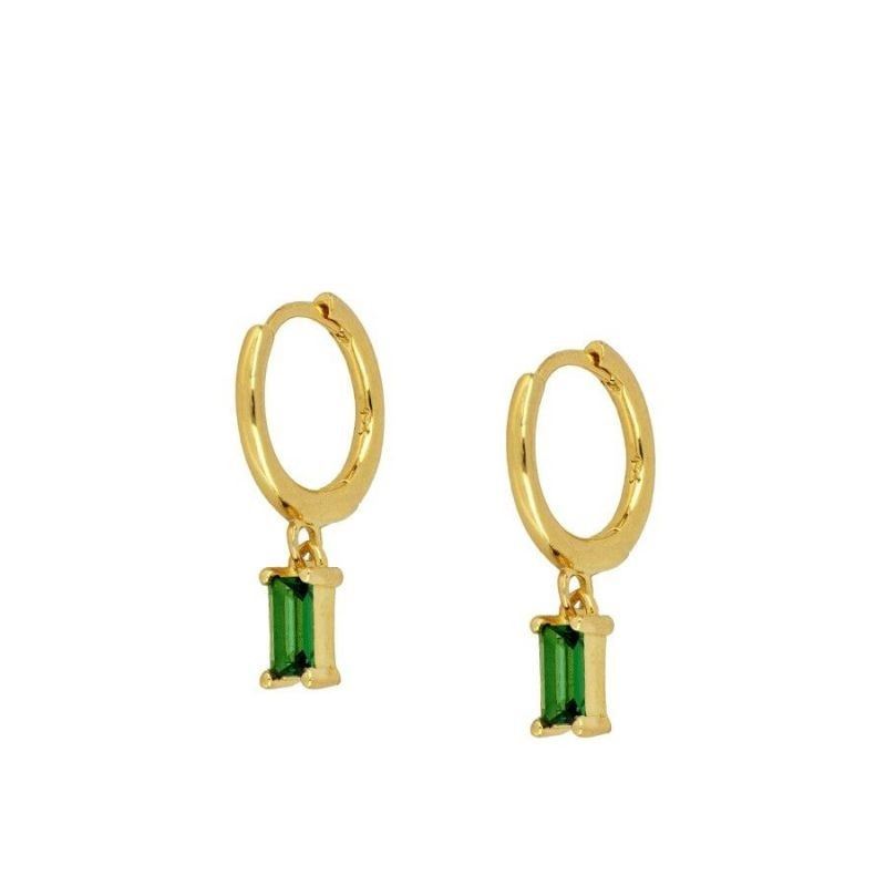 Pendientes aro con circonita rectangular elaborados en Plata de Primera Ley 925 bañada en oro.