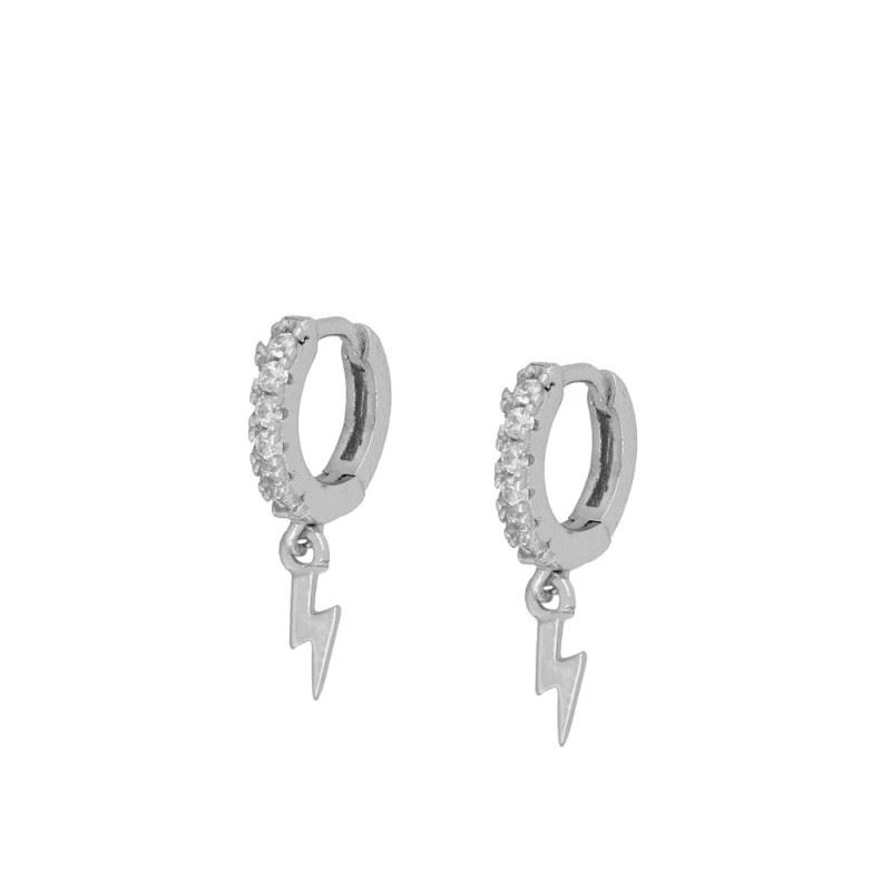 Pendientes aro rayo elaborado en Plata de Primera Ley 925 bañada en rodio con circonitas