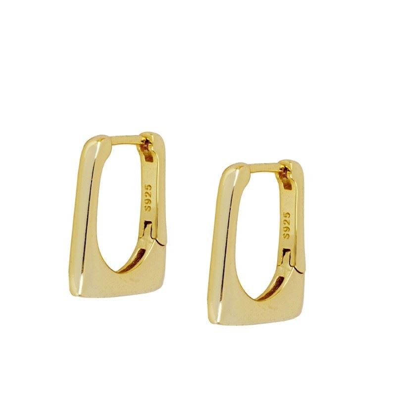 Pendientes aro rectangular elaborados en Plata de Primera Ley 925 bañada en oro.