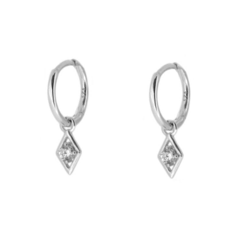 Pendientes aro con rombo elaborados en Plata de Primera Ley 925 bañada en rodio