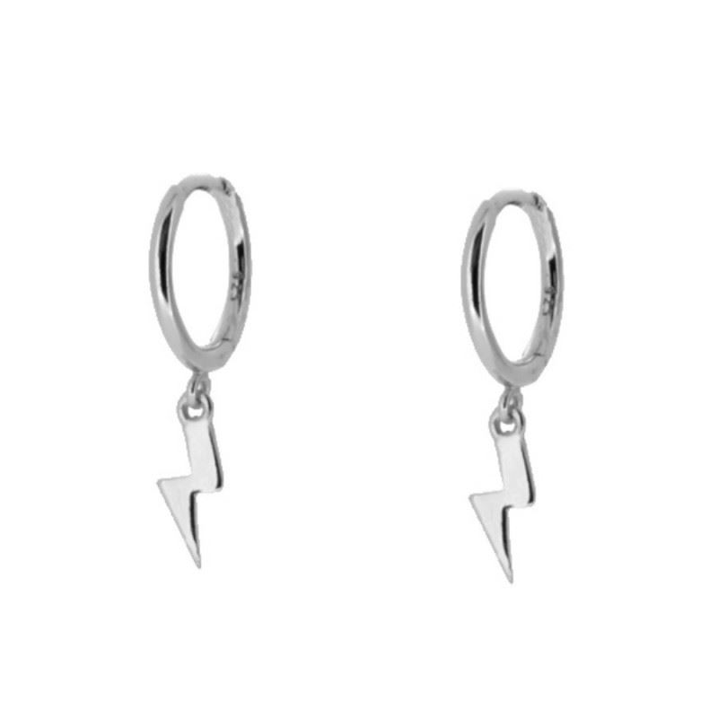 Pendientes aro rayo elaborados en Plata de Primera Ley bañada en rodio