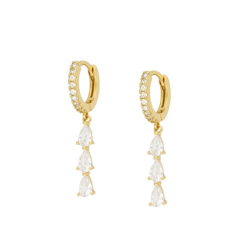 Pendientes aro con 3 circonitas colgando elaborados en Plata de Primera Ley 925 bañada en oro.
