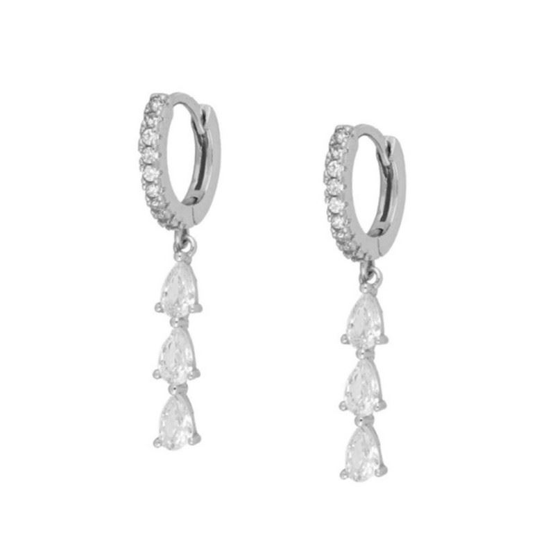 Pendientes aro con 3 circonitas colgando elaborados en Plata de Primera Ley 925 bañada en rodio
