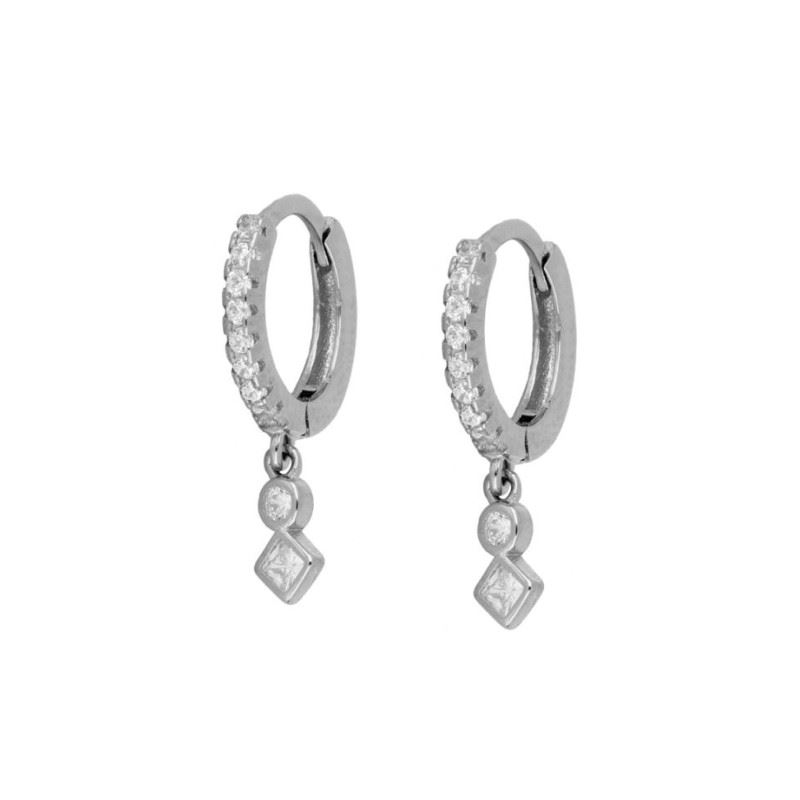 Pendiente aro con circonita disponible en plata de primera ley y plata 925.