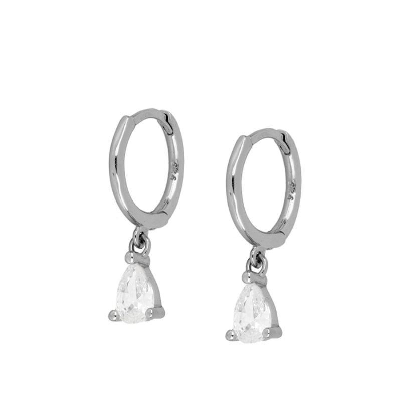Pendientes aro con gota elaborado en Plata de Primera Ley 925 bañada en rodio