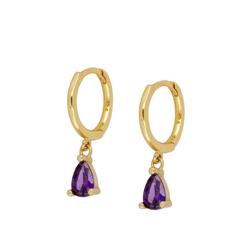 Pendiente aro con gota elaborado en Plata de Primera Ley 925 bañada en Oro