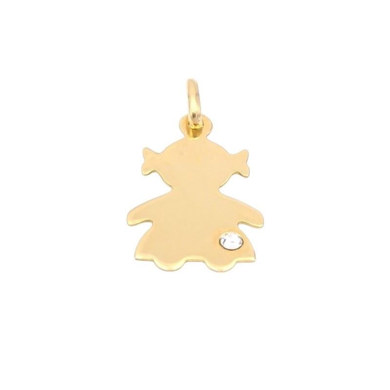 Colgante elaborado en Oro de Primera Ley 18Kt 750 mm en forma de silueta de niña con una circonita.