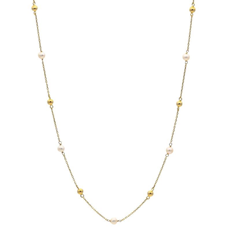 Collar elaborado en Oro de Primera Ley 18Kt 750 milésimas con bolas y perlas cultivadas