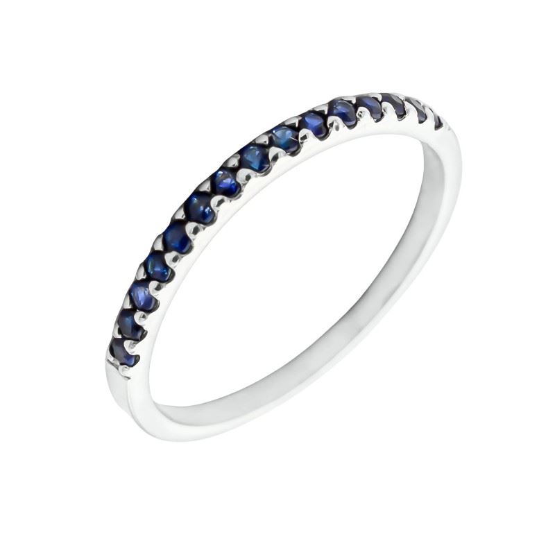 Anillo media alianza elaborado en Oro blanco de Primera Ley 18Kt 750 milésimas con 15 zafiros naturales talla brillante, haciendo un total de 0,20ct.