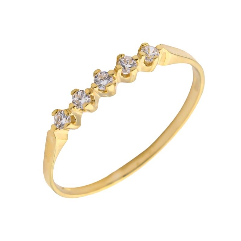 Anillo media alianza elaborado en Oro de Primera Ley 18Kt 750 milésimas con 5 circonitas.