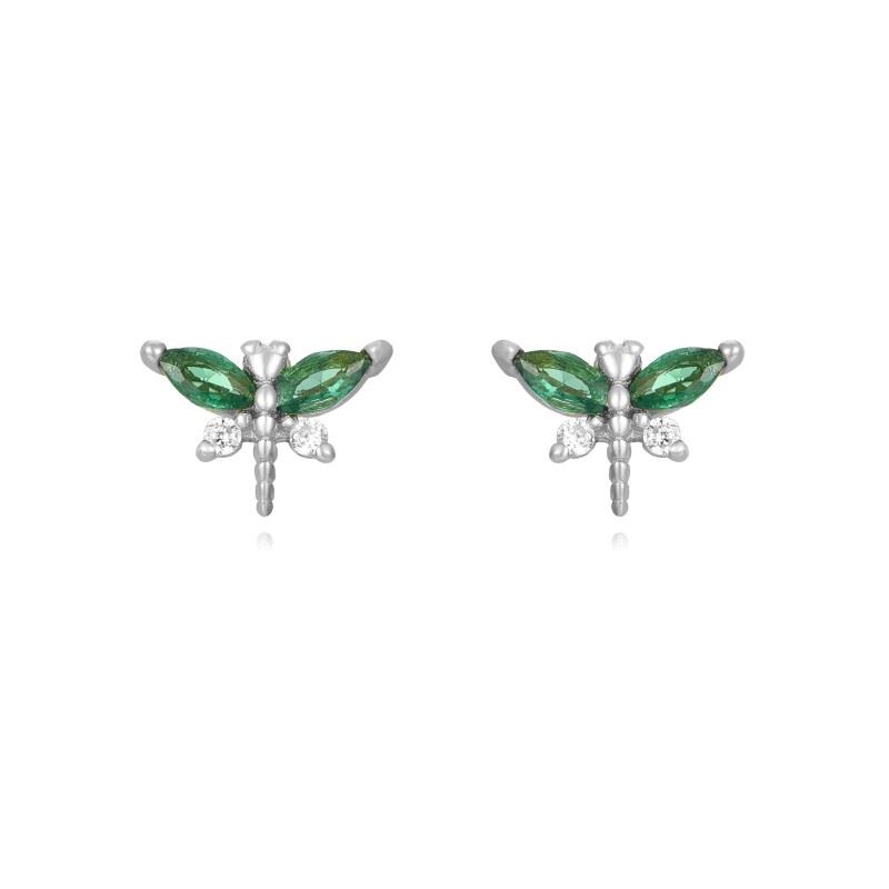 Pendiente Mini Libélula Verde Plata
