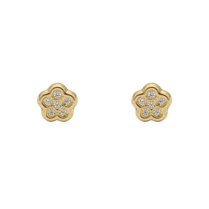 Pendientes flor elaborados en Oro de Primera Ley 18K 750 milésimas con circonitas