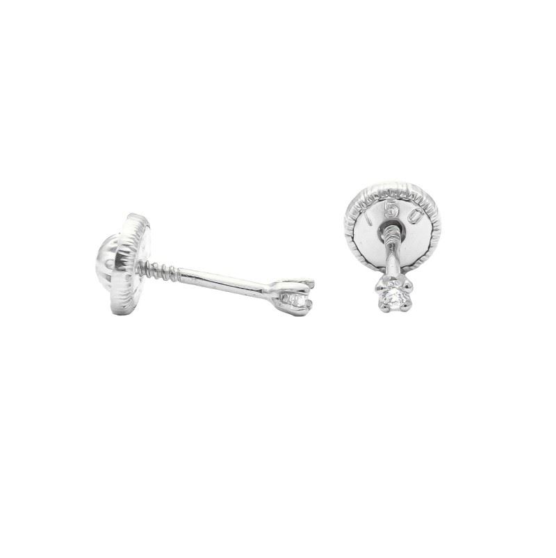Pendientes elaborados en Oro de Primera Ley 18Kt 750 milésimas cuatro garras con 2 diamantes naturales talla brillante con un total de 0,067ct.