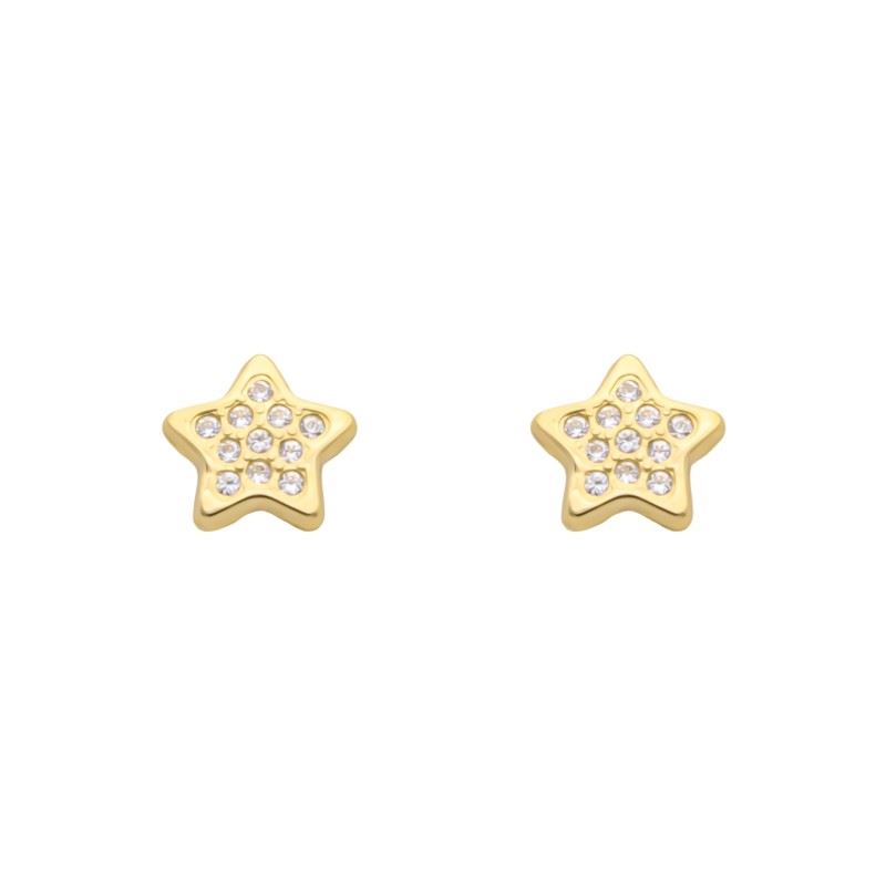 Pendientes Estrella elaborados en Oro de Primera Ley 18K 750 milésimas con circonitas