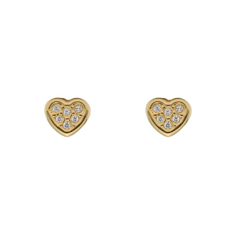 Pendientes corazón elaborados en Oro de Primera Ley 18K 750 milésimas con circonitas