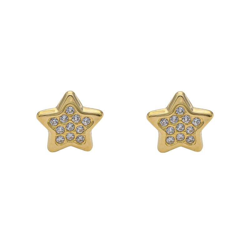 Pendientes fabricados en Oro de Primera Ley 18K 750 milésimas con circonitas engarzadas en un precioso diseño.