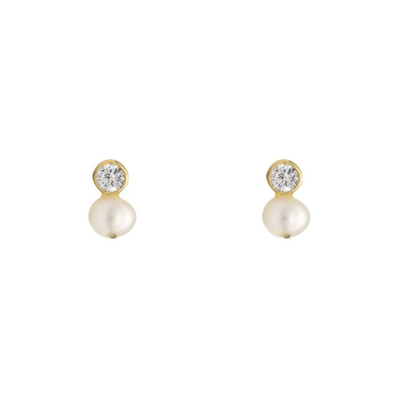 Pendientes Tu y Yo elaborados en Oro de Primera Ley 18K 750 milésimas con perla cultivada