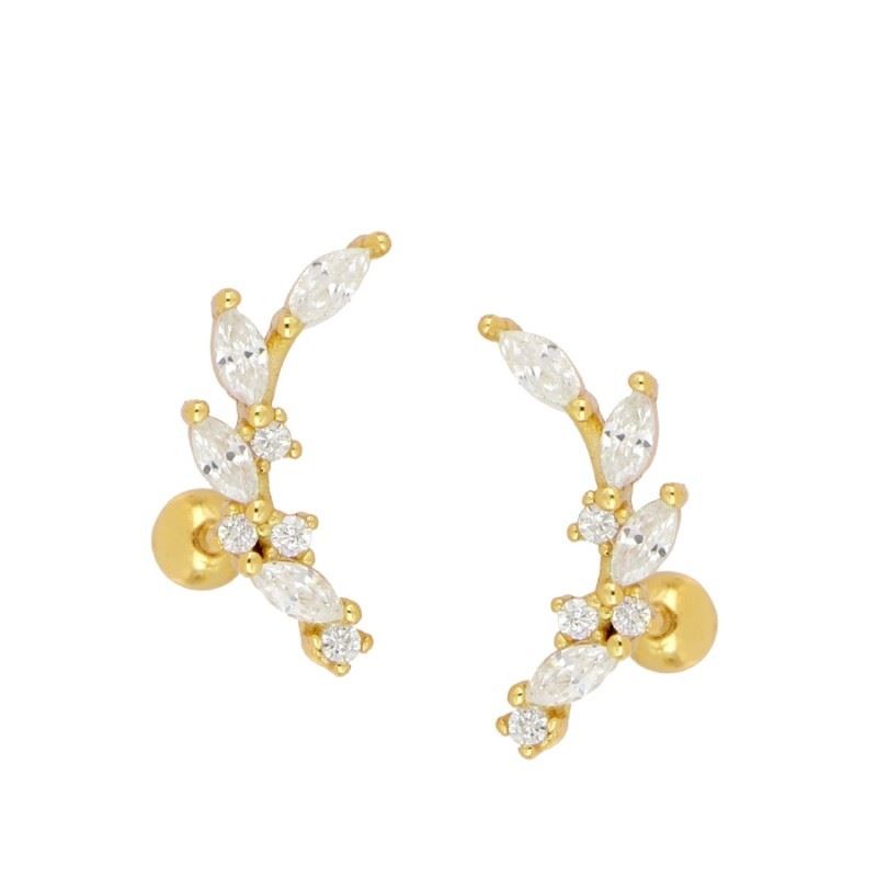 Pendientes piercing laurel elaborados en Plata de Primera Ley 925 bañada en oro